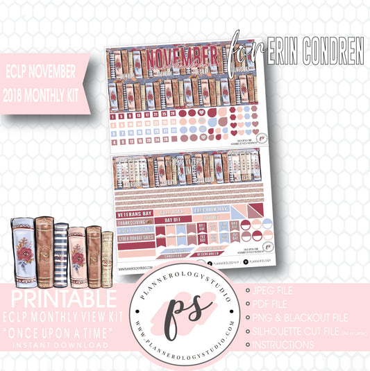 Once Upon a Time November 2018 Monthly View Kit Digital Printable Planner Stickers (for Standard A5 Wide Monthly 1.6" Width Date Boxes)