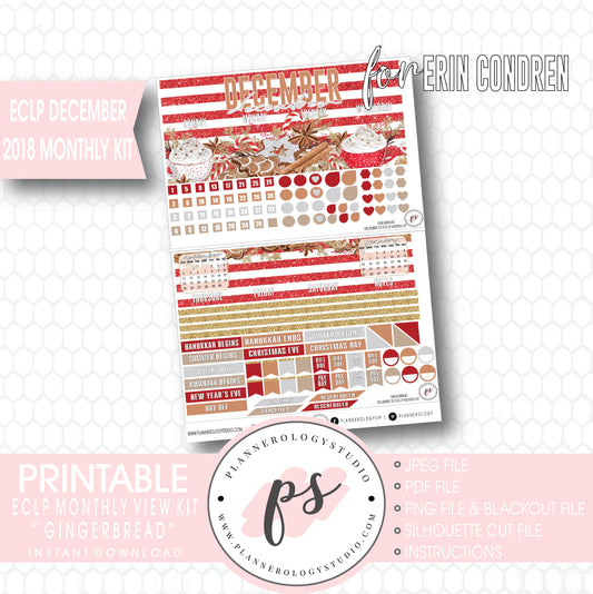 Gingerbread Christmas December 2018 Monthly View Kit Digital Printable Planner Stickers (for Standard A5 Wide Monthly 1.6" Width Date Boxes)