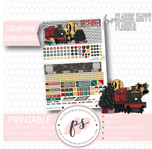 H Express Christmas (Harry Potter) Christmas December 2018 Monthly View Kit Digital Printable Planner Stickers (for use with Classic Happy Planner)