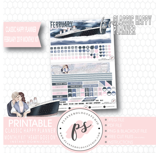 Heart Goes On (Titanic) February 2019 Monthly View Kit Digital Printable Planner Stickers (for use with Classic Happy Planner)