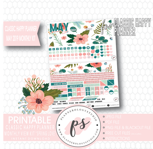 Spring Love May 2019 Monthly View Kit Digital Printable Planner Stickers (for use with Classic Happy Planner)