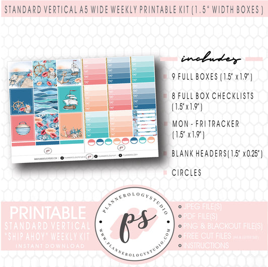 Ship Ahoy Weekly Digital Printable Planner Stickers Kit (for use with Standard Vertical A5 Wide Planners)