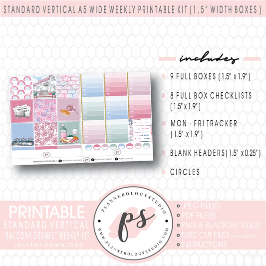 Balcony Dreams Weekly Digital Printable Planner Stickers Kit (for use with Standard Vertical A5 Wide Planners)