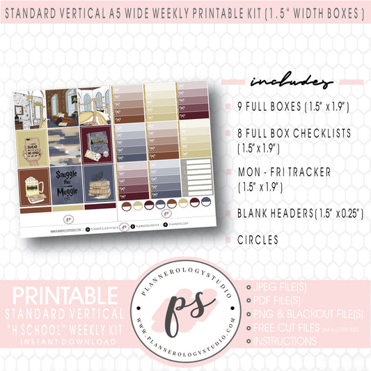 H School (Harry Potter Inspired) Weekly Digital Printable Planner Stickers Kit (for use with Standard Vertical A5 Wide Planners)