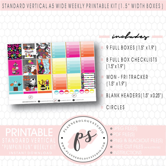 Pumpkin Fun (Halloween) Weekly Digital Printable Planner Stickers Kit (for use with Standard Vertical A5 Wide Planners)