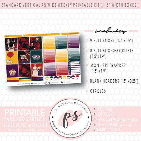 Scary Movie (Halloween) Weekly Digital Printable Planner Stickers Kit (for use with Standard Vertical A5 Wide Planners)