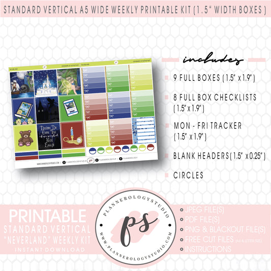 Neverland Weekly Digital Printable Planner Stickers Kit (for use with Standard Vertical A5 Wide Planners)