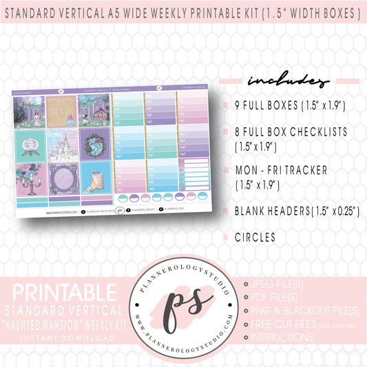 Haunted Mansion Weekly Digital Printable Planner Stickers Kit (for use with Standard Vertical A5 Wide Planners)