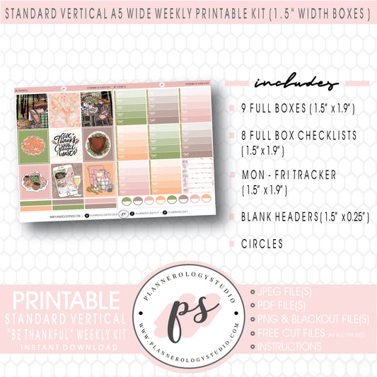 Be Thankful Weekly Digital Printable Planner Stickers Kit (for use with Standard Vertical A5 Wide Planners)