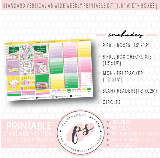 Back to School Weekly Digital Printable Planner Stickers Kit (for use with Standard Vertical A5 Wide Planners)