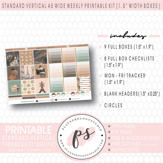 Parisian Winter Weekly Digital Printable Planner Stickers Kit (for use with Standard Vertical A5 Wide Planners)