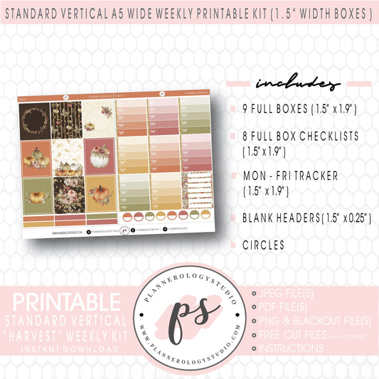 Harvest Weekly Digital Printable Planner Stickers Kit (for use with Standard Vertical A5 Wide Planners)