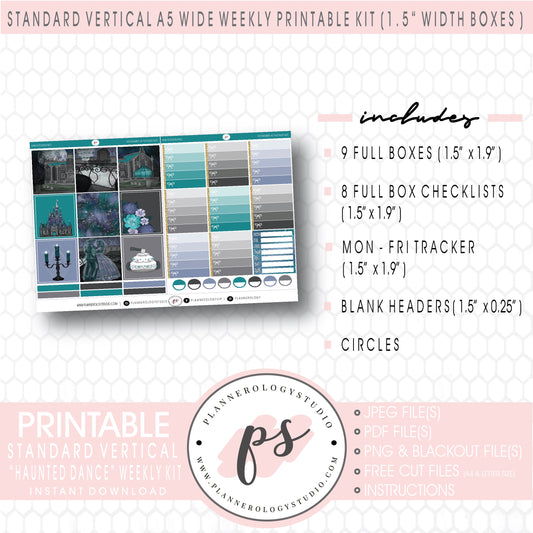 Haunted Dance Weekly Digital Printable Planner Stickers Kit (for use with Standard Vertical A5 Wide Planners)