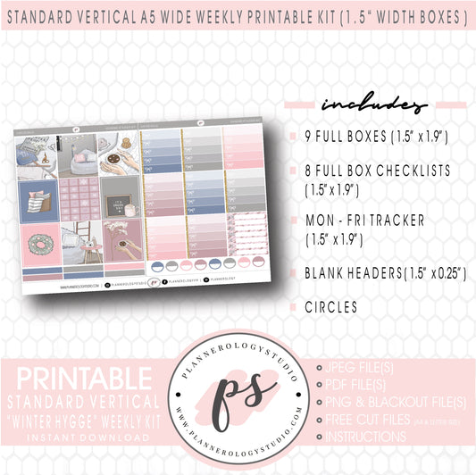 Winter Hygge Weekly Digital Printable Planner Stickers Kit (for use with Standard Vertical A5 Wide Planners)