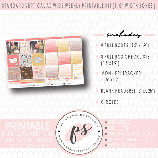 Twenty Twenty One New Years Weekly Digital Printable Planner Stickers Kit (for use with Standard Vertical A5 Wide Planners)