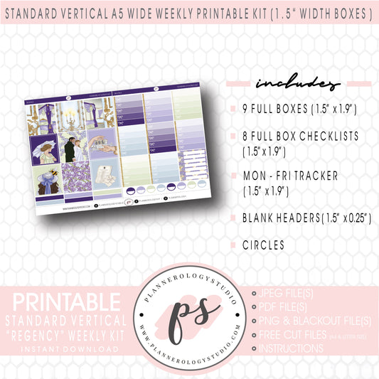 Regency (Bridgerton Inspired) Weekly Digital Printable Planner Stickers Kit (for use with Standard Vertical A5 Wide Planners)