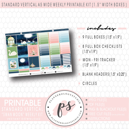 Swan Moon Weekly Kit Printable Planner Digital Stickers (for use with Standard Vertical A5 Wide Planners)