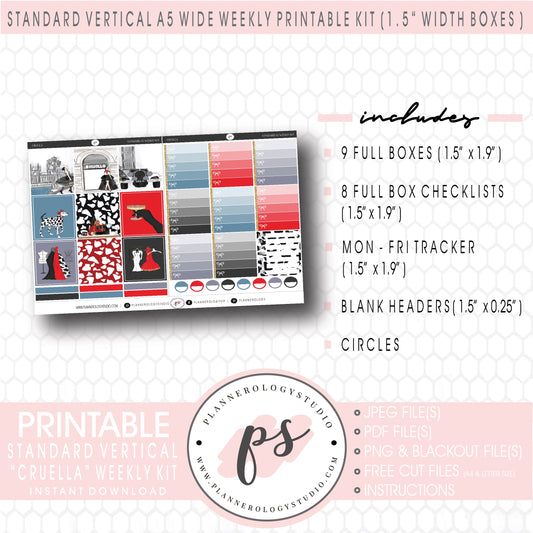 Cruella (101 Dalmations Inspired) Weekly Digital Printable Planner Stickers Kit (for use with Standard Vertical A5 Wide Planners)