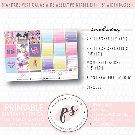 Venice Beach Weekly Digital Printable Planner Stickers Kit (for use with Standard Vertical A5 Wide Planners)