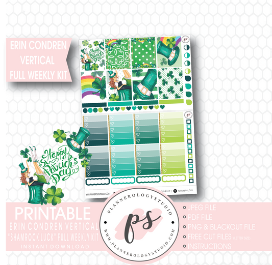 Shamrock Luck (St Patrick's Day) Full Weekly Kit Printable Planner Stickers (for use with Standard Vertical A5 Wide Planners)