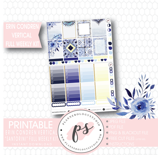 Santorini Full Weekly Kit Printable Planner Stickers (for use with Standard Vertical A5 Wide Planners)