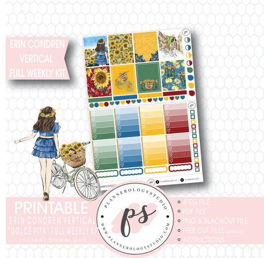 Dolce Vita Full Weekly Kit Printable Planner Stickers (for use with Standard Vertical A5 Wide Planners)