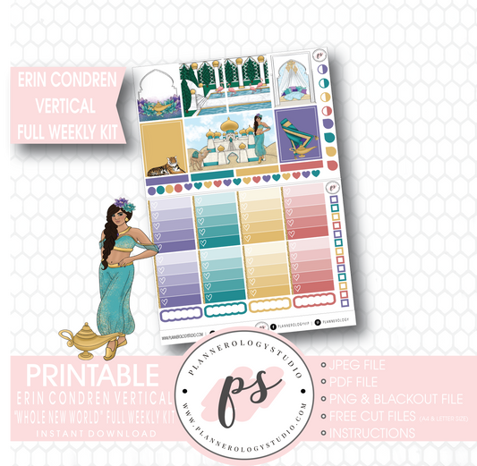 Whole New World (Aladdin Inspired) Full Weekly Kit Printable Planner Stickers (for use with Standard Vertical A5 Wide Planners)