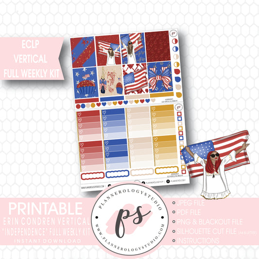 Independence Day 4th July Full Weekly Kit Printable Planner Stickers (for use with Standard Vertical A5 Wide Planners)