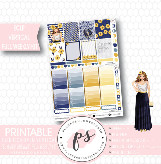 Summer Dreams Full Weekly Kit Printable Planner Stickers (for use with Standard Vertical A5 Wide Planners)