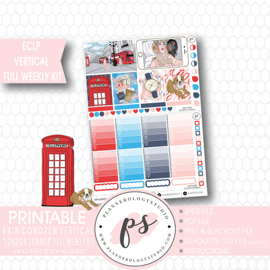London Summer Full Weekly Kit Printable Planner Stickers (for use with Standard Vertical A5 Wide Planners)