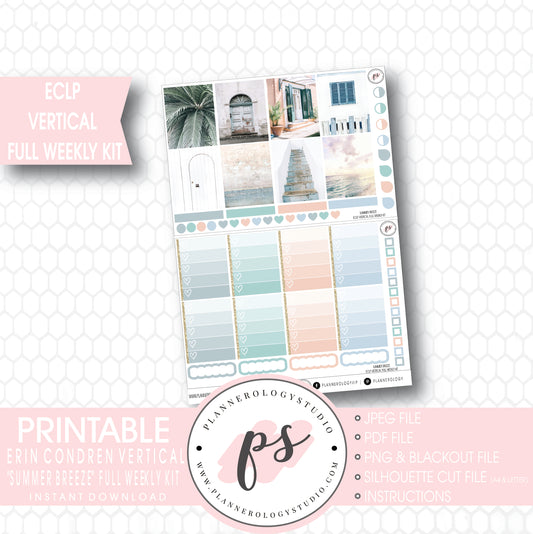 Summer Breeze Stock Photo Full Weekly Kit Printable Planner Stickers (for use with Standard Vertical A5 Wide Planners)
