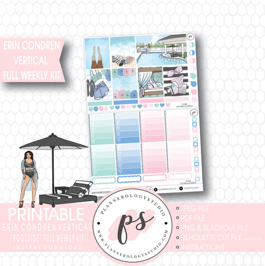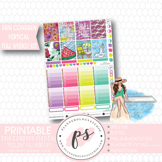 Pool Day Full Weekly Kit Printable Planner Stickers (for use with Standard Vertical A5 Wide Planners)