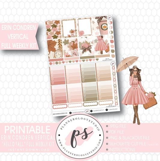 Hello Fall Full Weekly Kit Printable Planner Stickers (for use with Standard Vertical A5 Wide Planners)