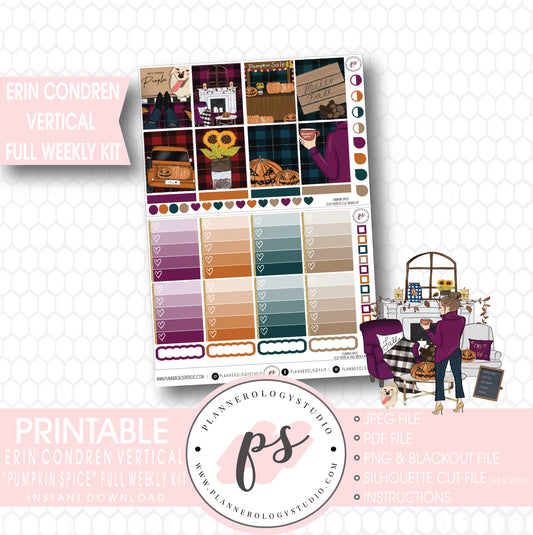 Pumpkin Spice Fall Full Weekly Kit Printable Planner Stickers (for use with Standard Vertical A5 Wide Planners)