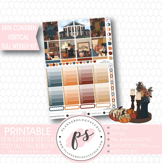 Cozy Fall Full Weekly Kit Printable Planner Stickers (for use with Standard Vertical A5 Wide Planners)