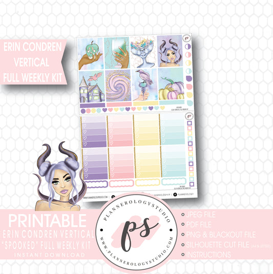 Spooked Halloween Full Weekly Kit Printable Planner Stickers (for use with Standard Vertical A5 Wide Planners)