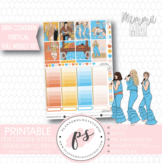 Here We Go Again! Mamma Mia Full Weekly Kit Printable Planner Stickers (for use with Standard Vertical A5 Wide Planners)