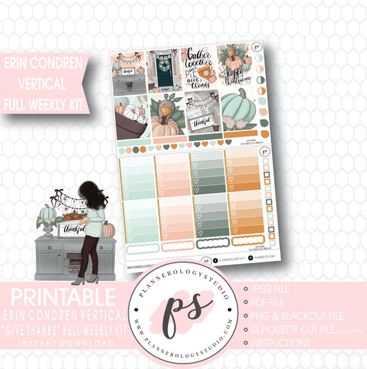 Give Thanks Thanksgiving Full Weekly Kit Printable Planner Digital Stickers (for use with Standard Vertical A5 Wide Planners)