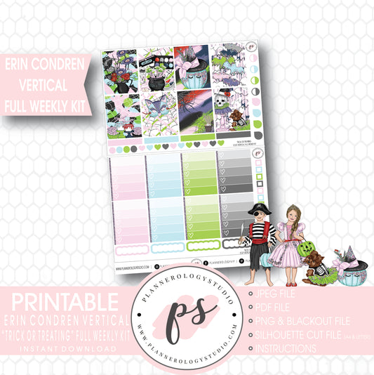 Trick or Treating Halloween Full Weekly Kit Printable Planner Digital Stickers (for use with Standard Vertical A5 Wide Planners)