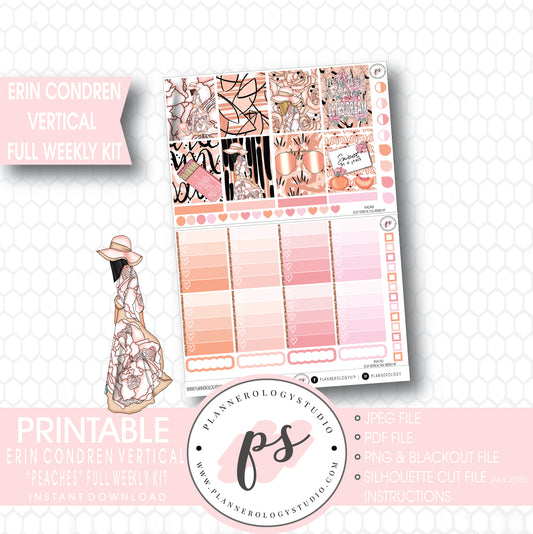 Peaches Full Weekly Kit Printable Planner Stickers (for use with Standard Vertical A5 Wide Planners)