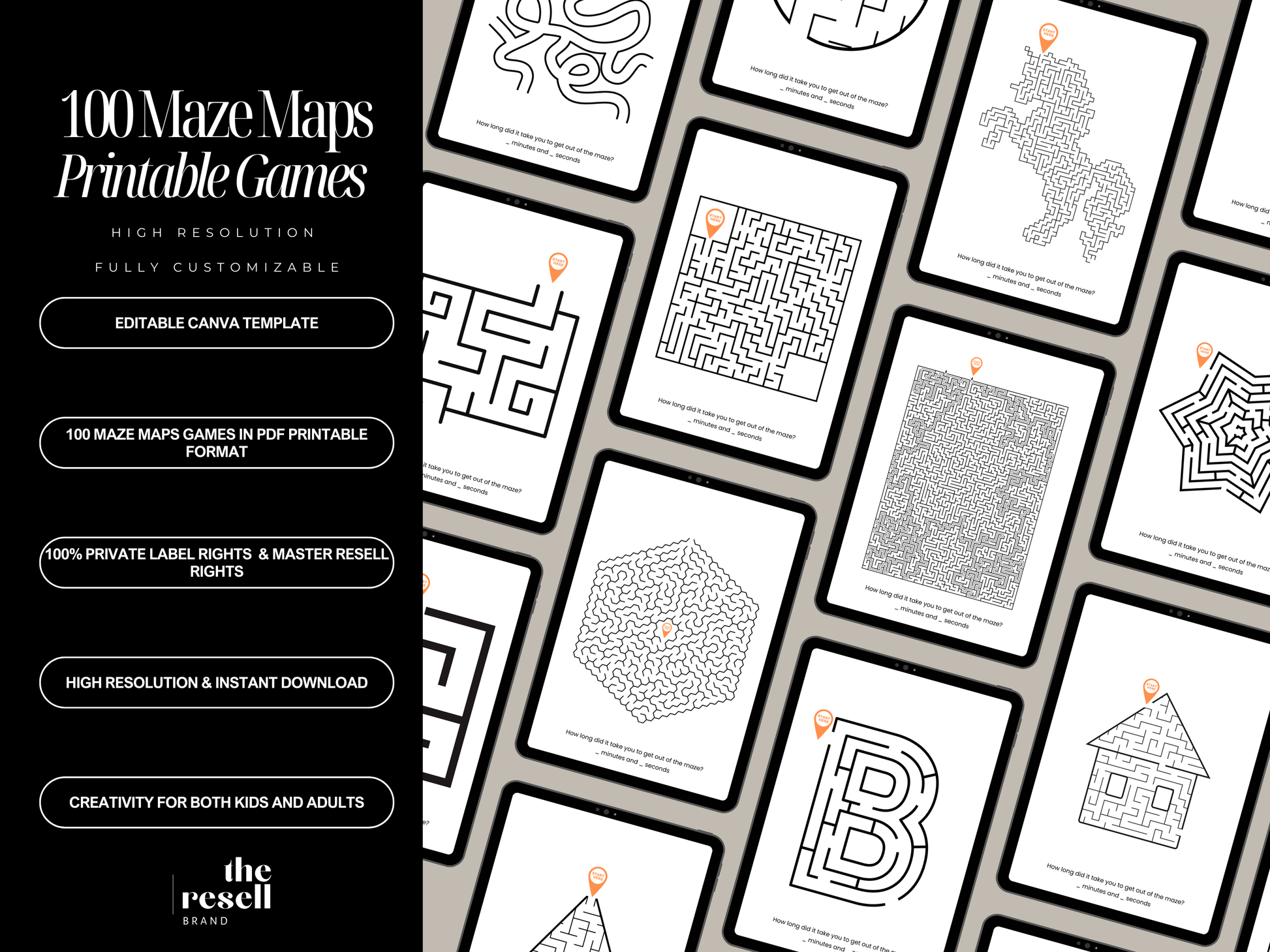 🧠 100 Maze Maps Bundle – Editable Canva Template + PDF with PLR & MRR License! 🧠
