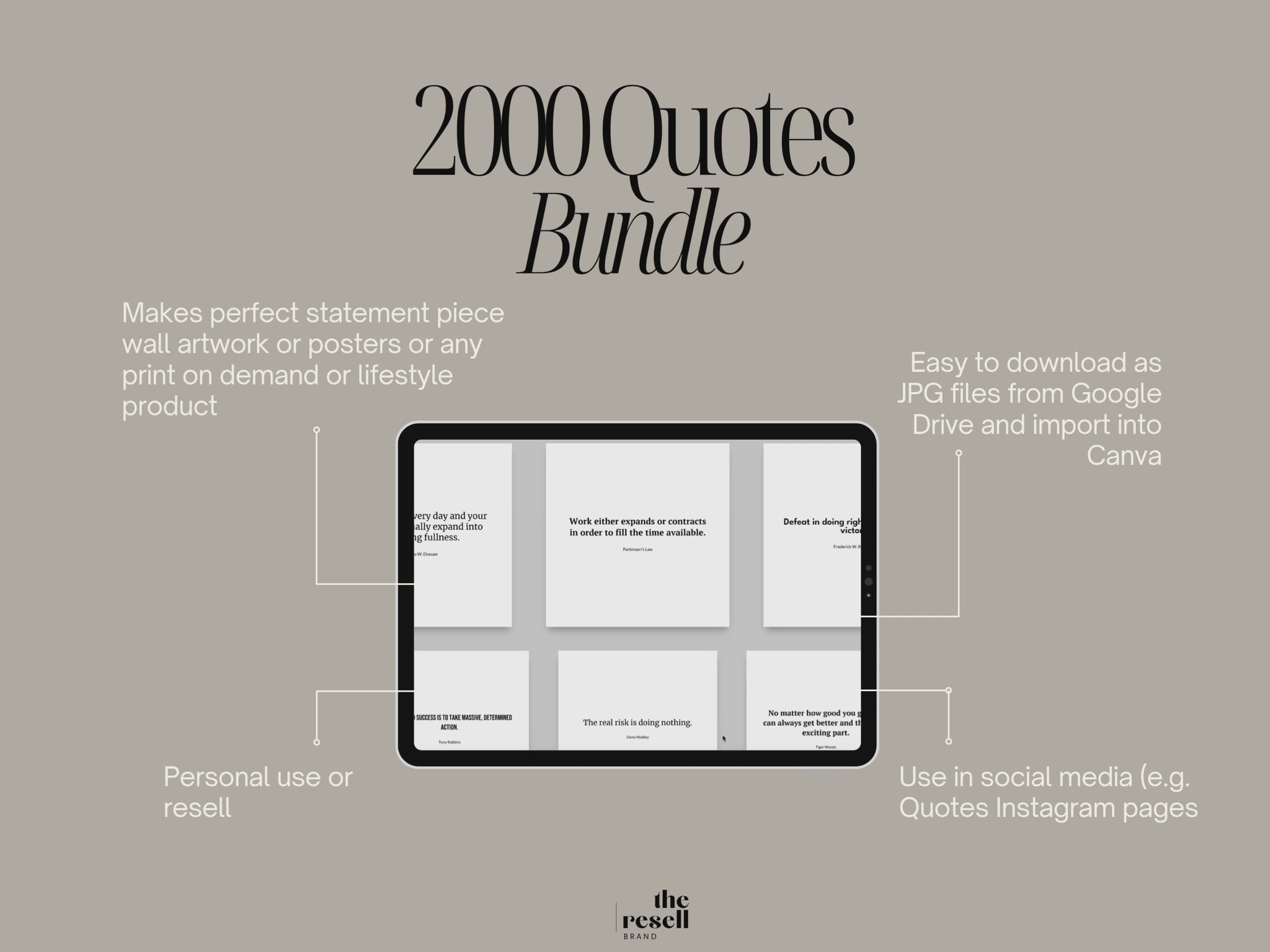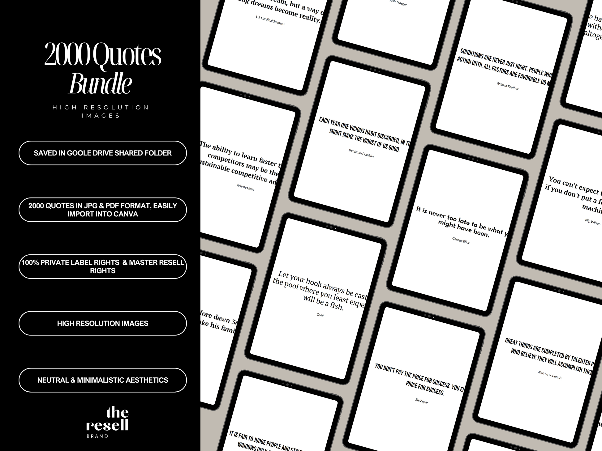 • 2000 quotes in JPG + PDF formats (easy to import into Canva or use directly)