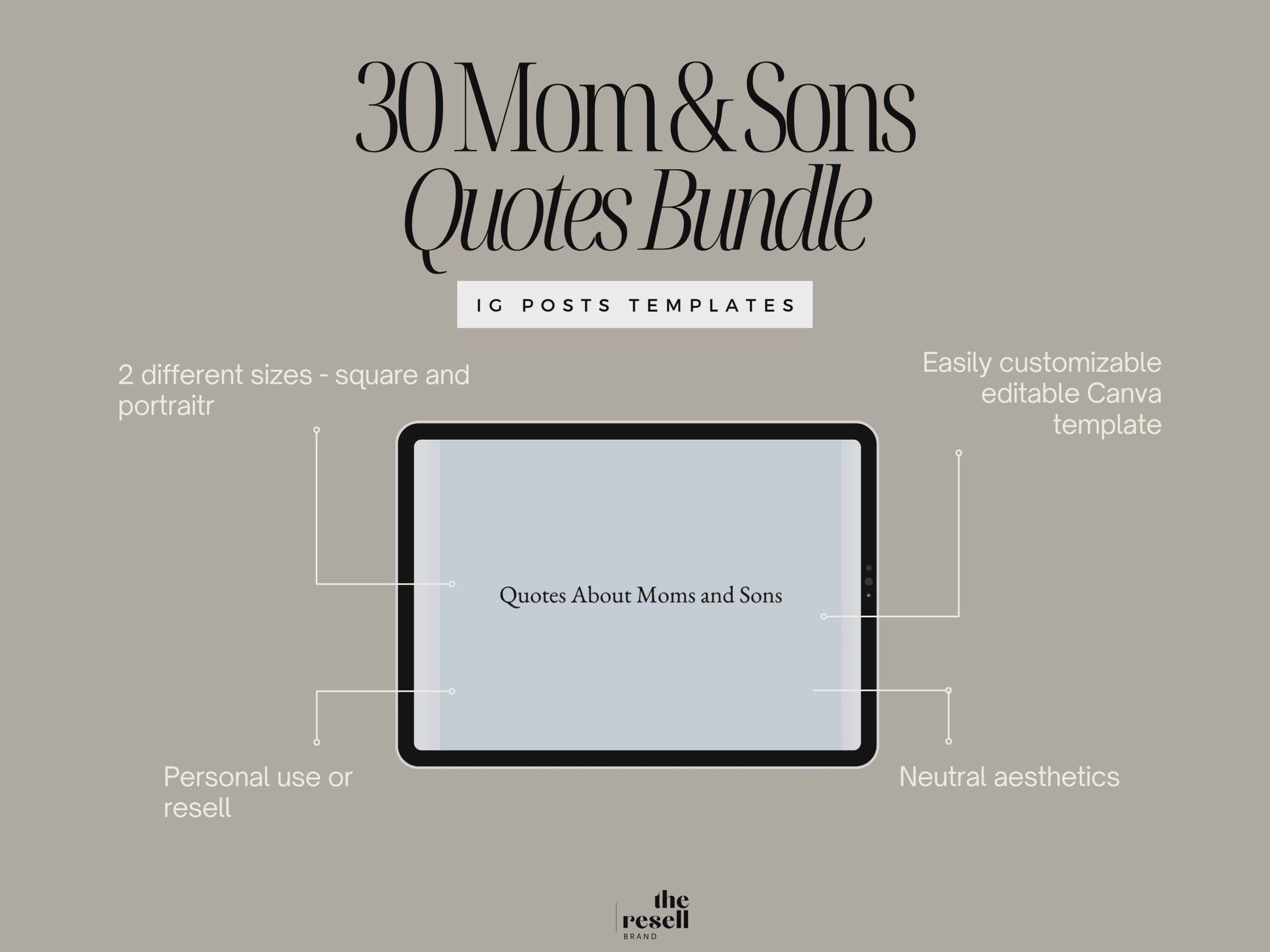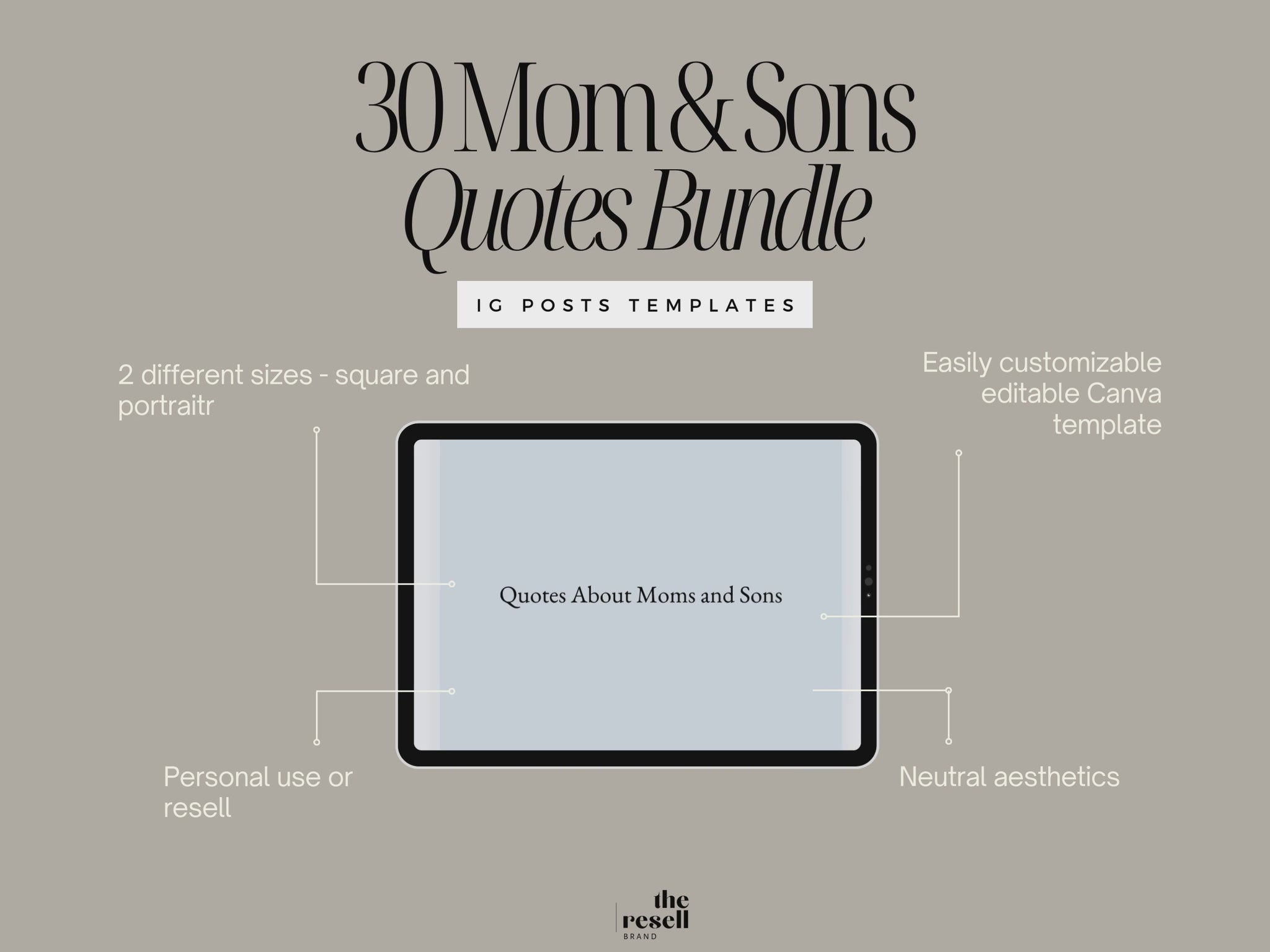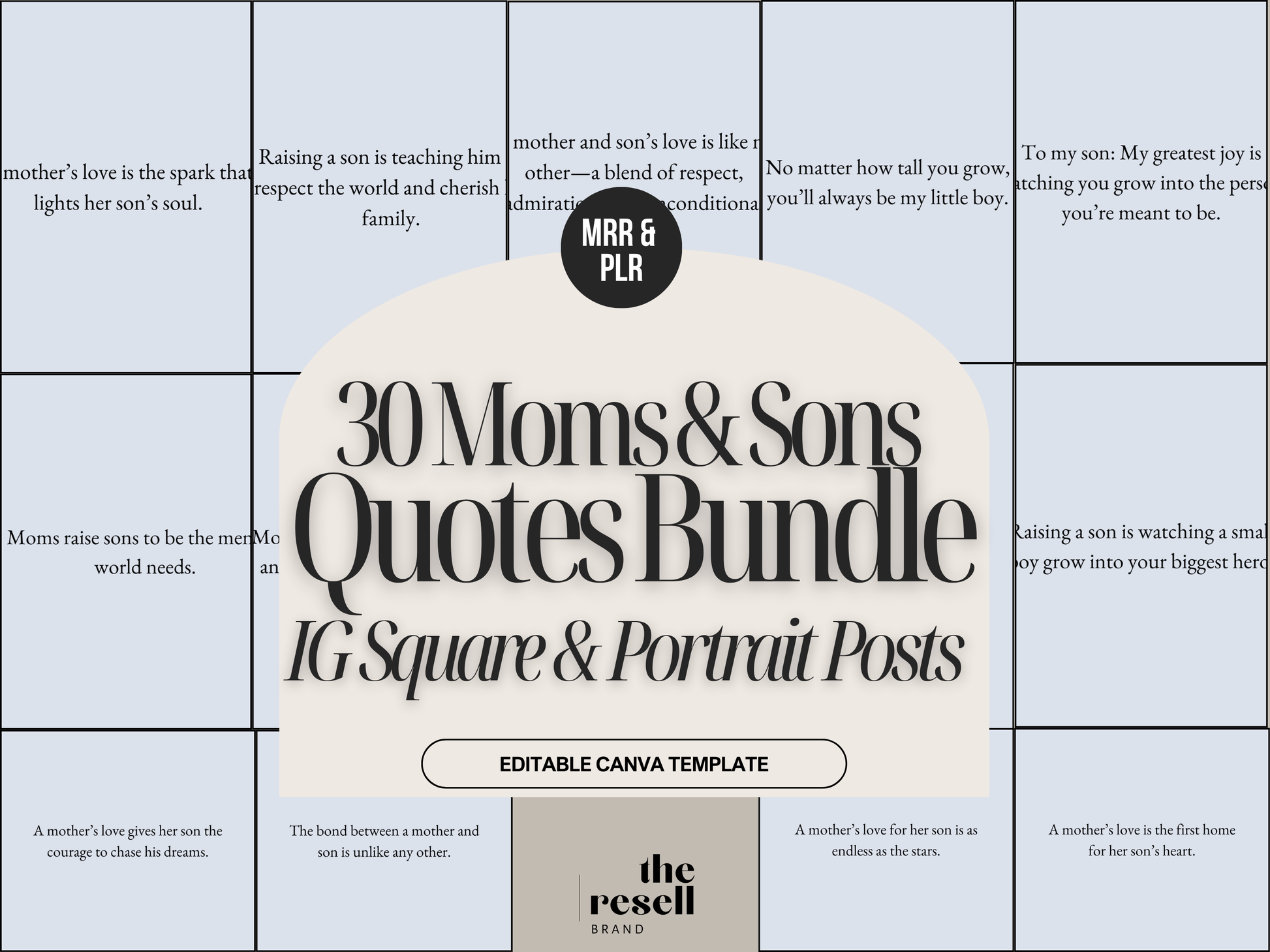 The 30 Moms & Sons Quote Bundle is a collection of emotional, pre-written quote templates made for Instagram. Designed in both square (1080x1080) and portrait (1080x1350) formats, they’re perfect for Instagram (IG) or TikTok feed posts, reels covers, carousels, and stories.