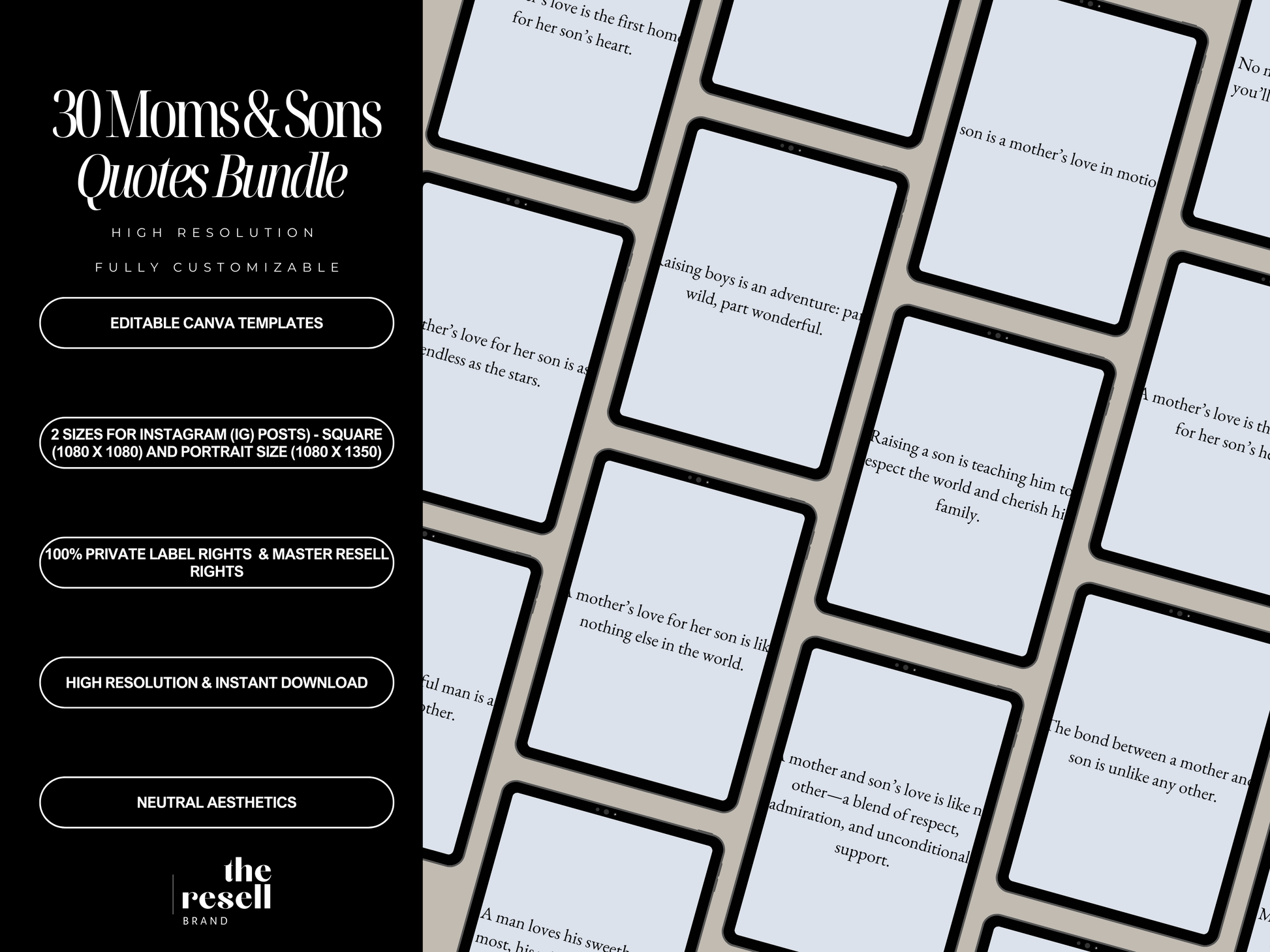 30 Canva Mom & Son Quote Templates for Instagram | Carousels & Posts Square + Portrait Sizes | Editable PLR Content | MRR Included | PNG Download