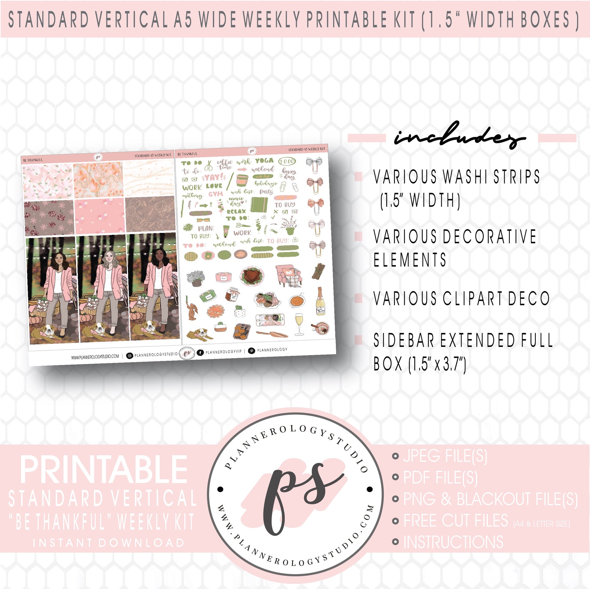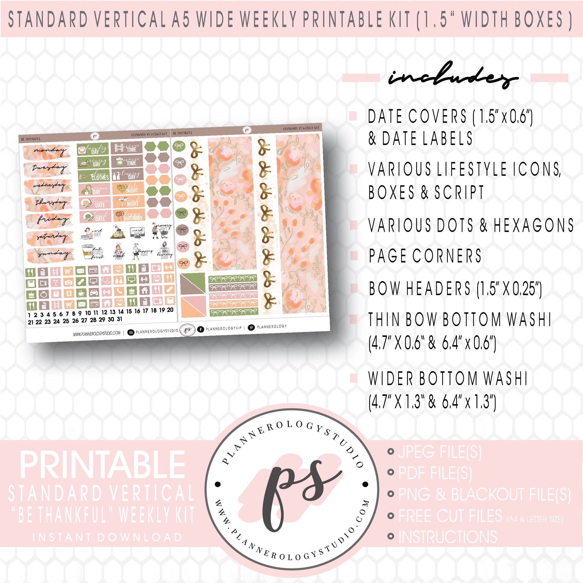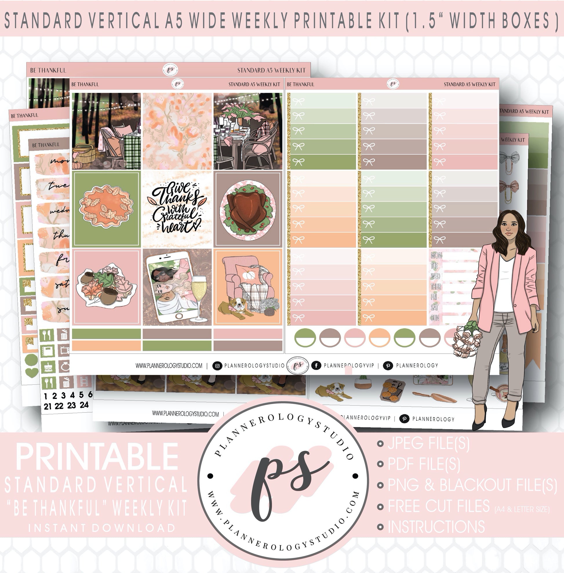 Be Thankful Weekly Digital Printable Planner Stickers Kit (for use with Standard Vertical A5 Wide Planners)