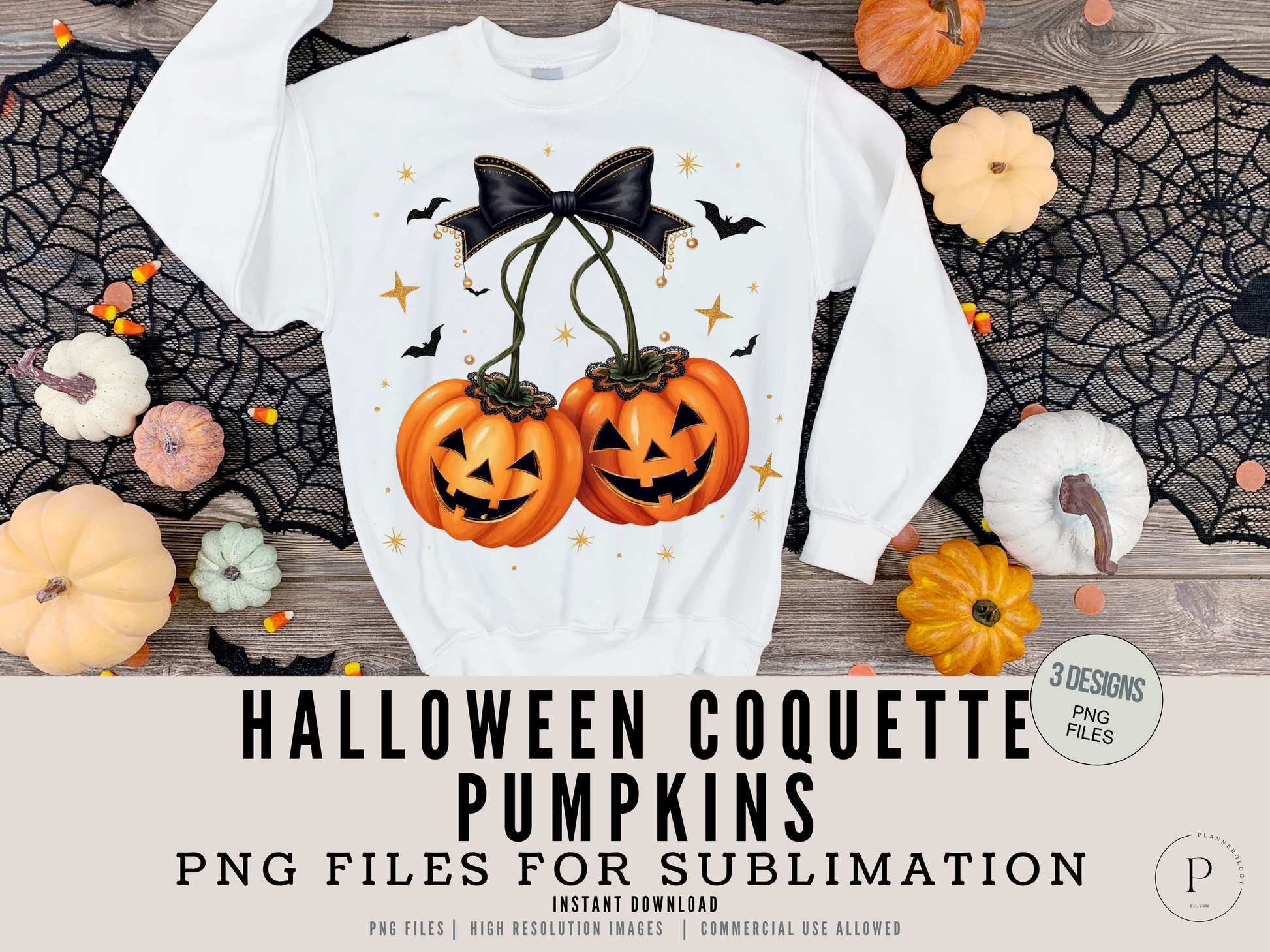 Add a soft, romantic twist to spooky season with this Dreamy Vintage Coquette Halloween Pumpkin Set. Featuring three elegant pumpkin designs, each adorned with dainty bows and vintage charm, this set is perfect for sublimation projects like sweaters, t-shirts, tote bags, mugs, and more.