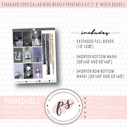 Creepy Halloween Weekly Digital Printable Planner Stickers Kit (for use with Standard Vertical A5 Wide Planners)