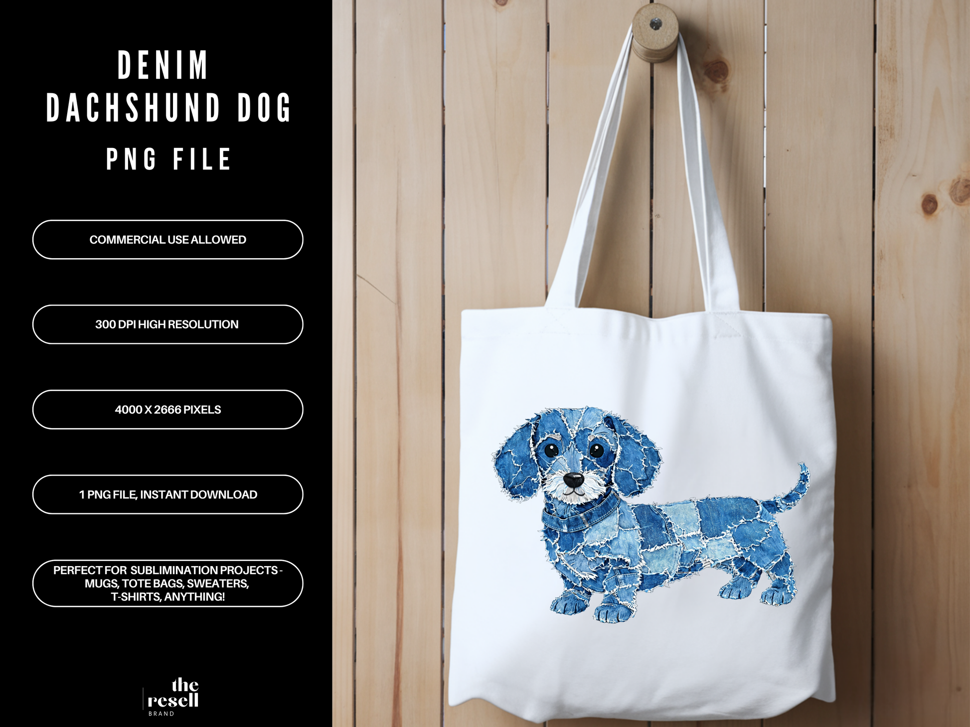 Denim Dachshund 300 DPI PNG | Cute Dachshund Sublimation Design | Blue Jean Dog Clipart | Sausage Dog Art | POD Commercial Use