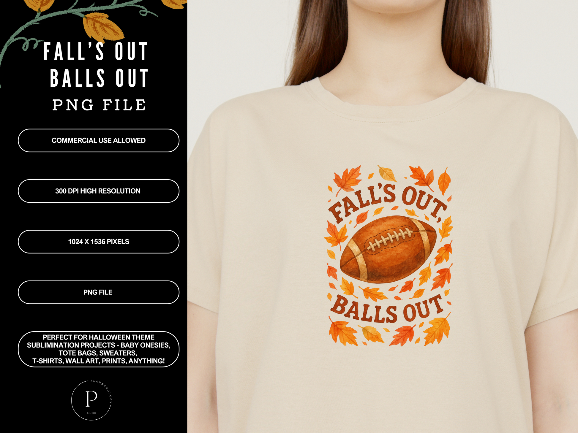 🍁 Fall’s Out, Balls Out PNG – Funny Football & Fall Design (Unlimited Commercial & POD Use)