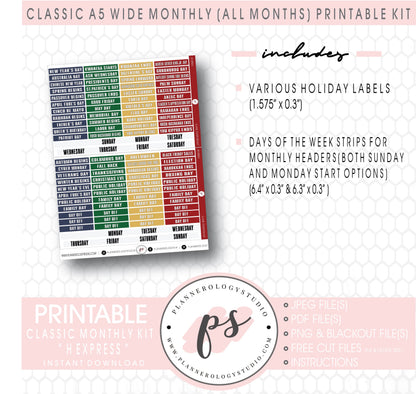 "H Express" is a Harry Potter inspired monthly printable kit, sized to fit classic A5 wide planners or planner inserts monthly pages with 1.575" width date boxes. Please refer to the listing images for specific measurements of various printable stickers included in the kit.